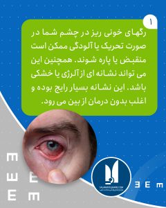 رگهای خونی ریز در چشم شما در صورت تحریک یا آلودگی ممکن است منقبض یا پاره شوند. همچنین این می تواند نشانه ای از آلرژی یا خشکی باشد. این نشانه بسیار رایج بوده و اغلب بدون درمان از بین می رود.