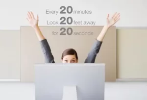 نوجوانان و جوانان ساعت ها در مقابل کامپیوتر، تلویزیون و تلفن همراه می گذرانند. تمام این مدت زمان نمایشگر می تواند بینایی رایانه و مشکلات چشم را ایجاد کند. وقتی از نزدیک به آن فوکوس می کنیم کمتر پلک می زنیم، بنابراین چشم ها خشک و خسته می شوند. برای کمک، قانون ۲۰-۲۰-۲۰ را امتحان کنید. هر ۲۰ دقیقه، ۲۰ ثانیه از صفحه نمایش فاصله بگیرید و به چیزی در فاصله ۲۰ فوتی نگاه کنید. سعی کنید از قطره های مرطوب کننده مجدد در طول روز استفاده کنید.