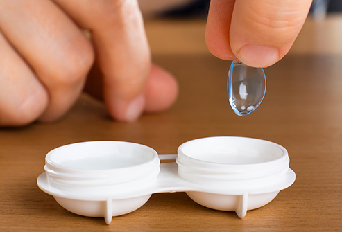 To keep your eyes healthy, clean your contacts with the solution your doctor recommends — never water or saliva — and store them in a proper case. (Change out the case every 3 months.) It’s also really important to take them out before you go to bed. If you wear disposable ones, switch them out as your doctor recommends.